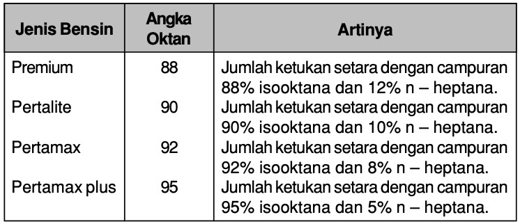 Berilah pengertian yang tepat mengenai angka oktan berikut Mas Dayat